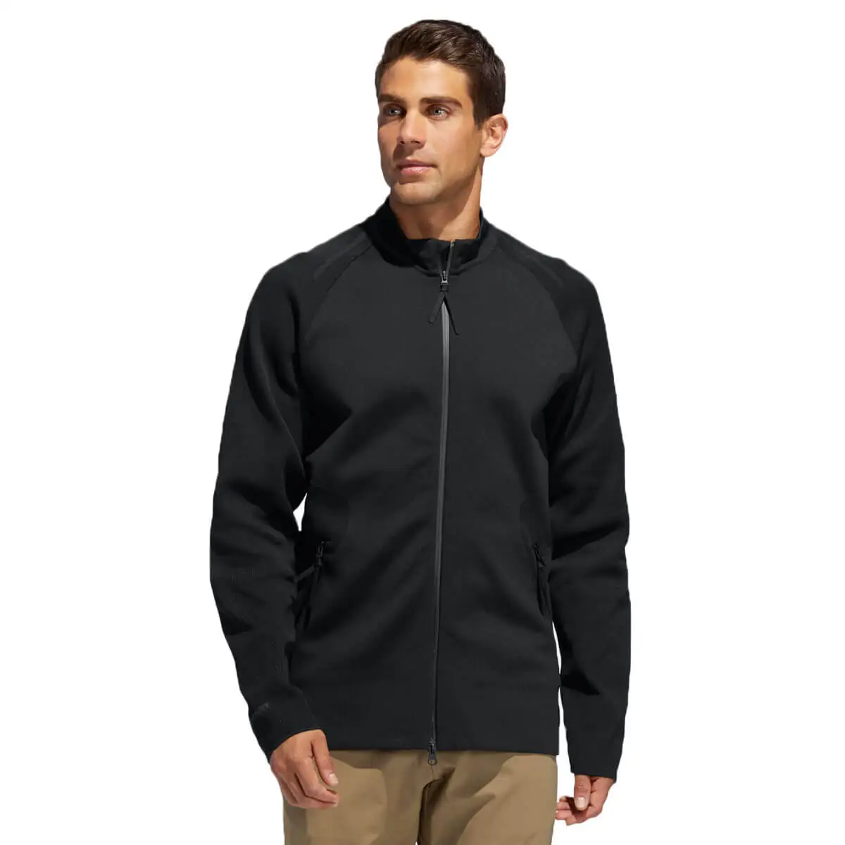 This golf sweatshirt gives you comfort on the course or the clubhouse. It’s built with soft premium knit fabric for flexibility and movement. The full zip and stand-up collar let you adjust your coverage during chilly morning rounds. Front zip pockets provide a place for your essentials.