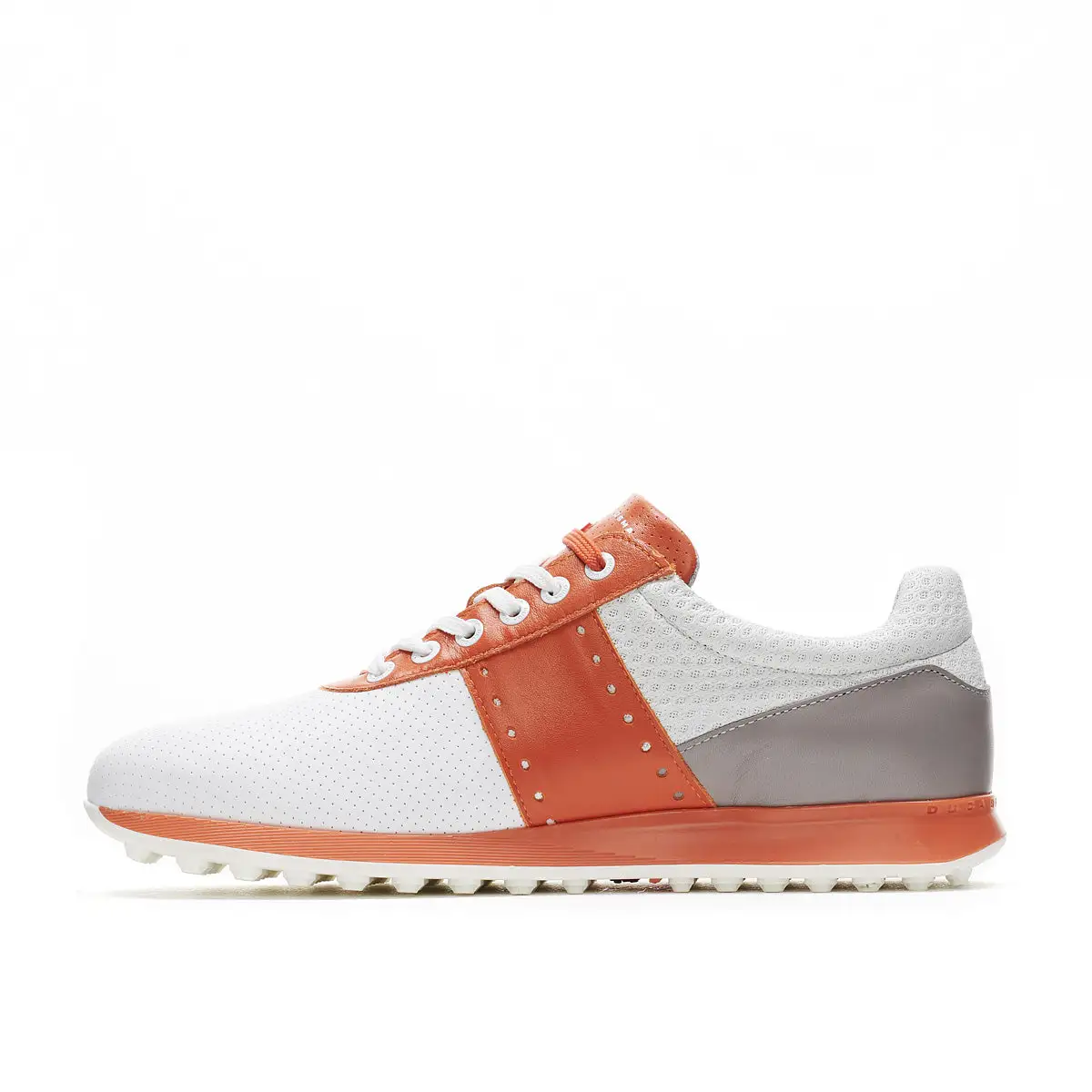 Round out your active yet fashion-forward look with the one and only Belair golf shoe. Made with soft, perforated nappa leather, it has wax laces in two different colours, allowing you to change your look depending on your mood. Thanks to the breathable internal bootie system and memory foam leather insole, your feet will remain dry and comfortable on or off the golf course. It also features Duca’s Airplay VI outsole, which combines functionality with fit. The heightened heel, protective toe bumper, and 5mm nubs keep you stable during your swing, so you keep your stance for that winning shot.