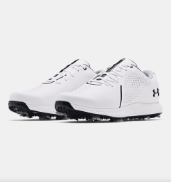 Golf spikes that keep your feet comfortable to keep you focused. The microfibre leather is light but durable, the Charged Cushioning® absorbs impact, and the Never-Wet treatment keeps you dry.
